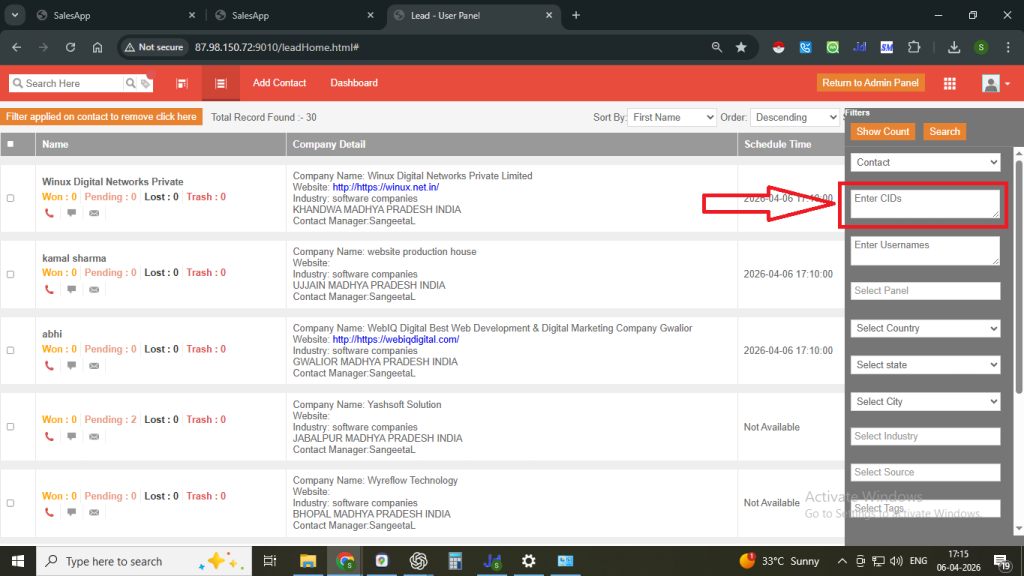 By using CIDs, you can directly search and assign specific contacts while ensuring that already assigned data is not reassigned. This helps maintain clarity, improves data handling, and ensures a smooth workflow for the sales team.