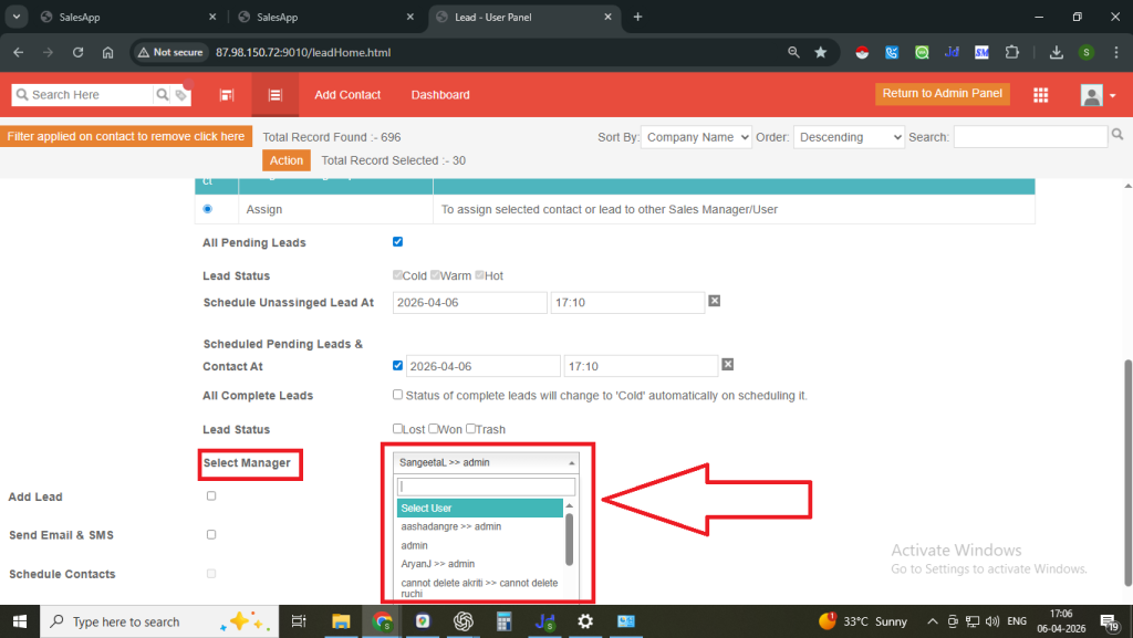The data will now be assigned and will appear on the sales manager’s dashboard.