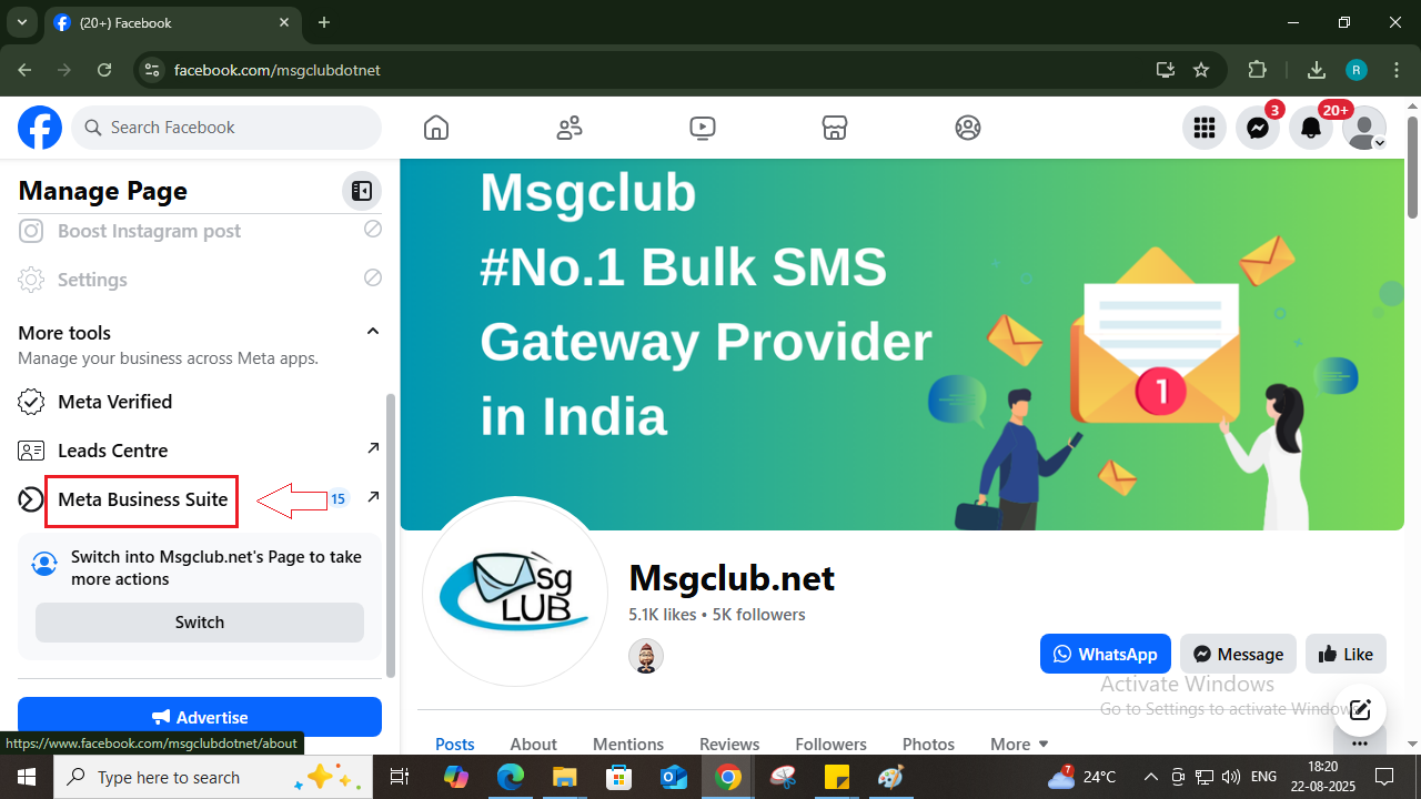 Step 3: On the left side of the page, click on the Meta Business Suite option.