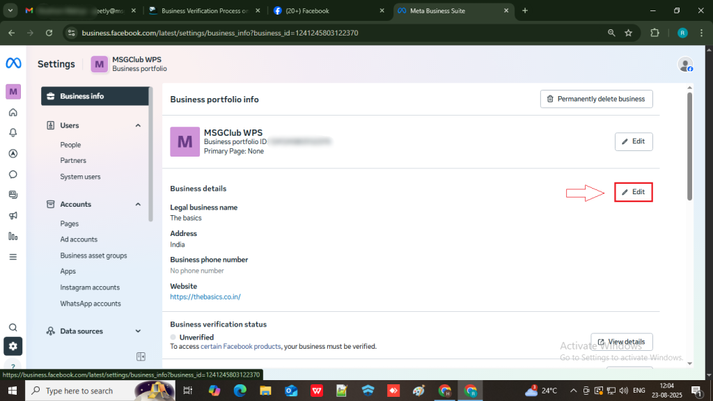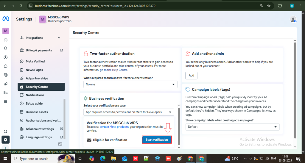 Meta may ask you to verify your business in order to access certain features and products. This helps them ensure that your business is legitimate.
