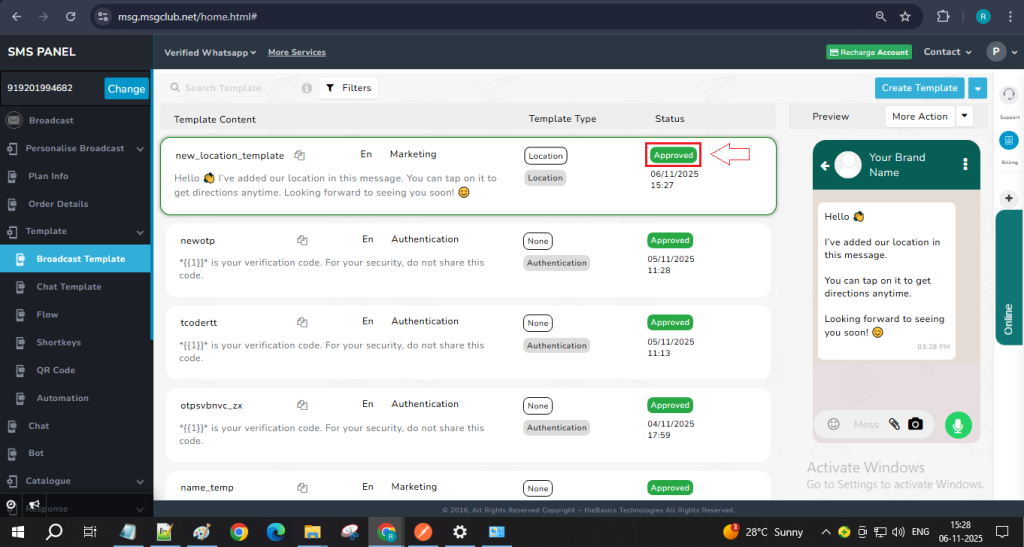 Step 8: After your template status is shown as Approved then you can start sending your WhatsApp messages