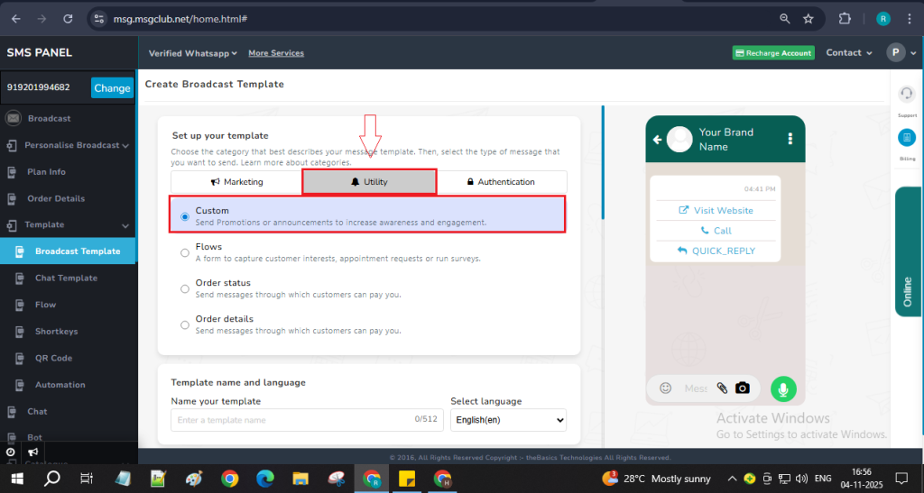 Ans. A Utility Template is a WhatsApp message format used to send important information or updates to customers — such as order confirmations, payment reminders, delivery updates, or appointment alerts. It helps businesses share essential details in a professional and structured way.